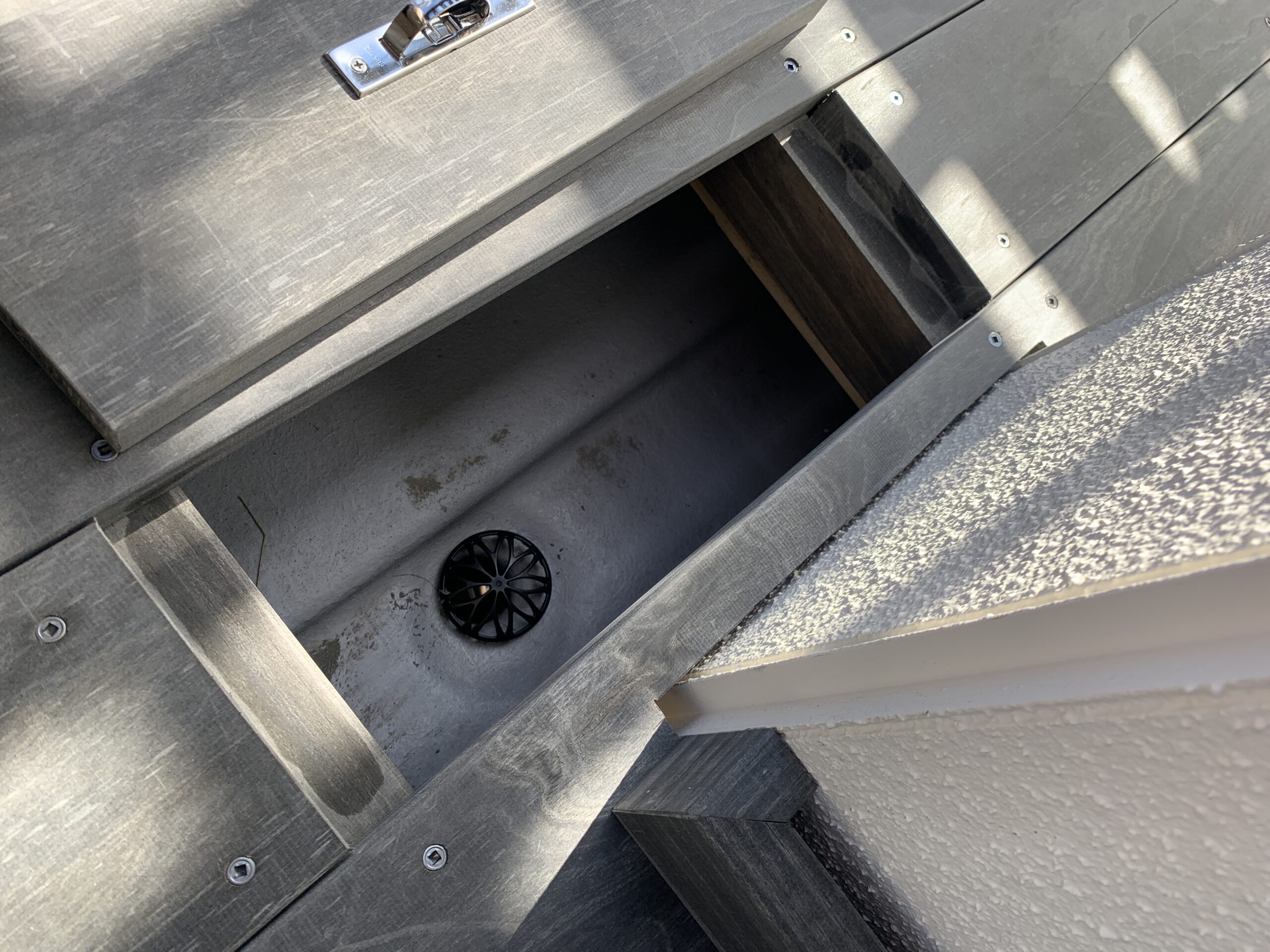 デッキの下は 排水溝の為 簡単に開けられるように加工されてます